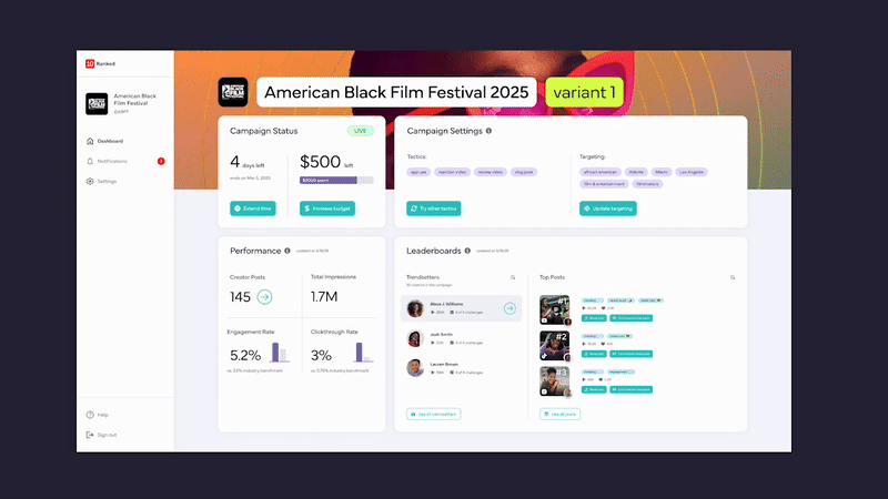 Performance Tracking: Instantly see who’s delivering results and boost top-performing creators.