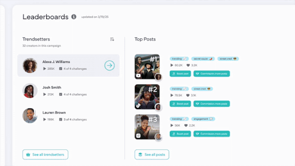Gamified Leaderboards: Creators compete to drive engagement, clicks, and sales, turning marketing into a high-stakes game.